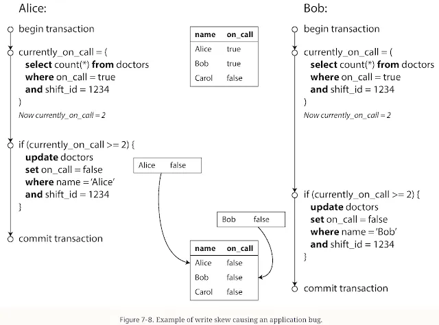 쓰기 스큐는 두 트랜잭션이 같은 객체를 읽어서 그 중 일부를 갱신할 때 나타날 수 있음