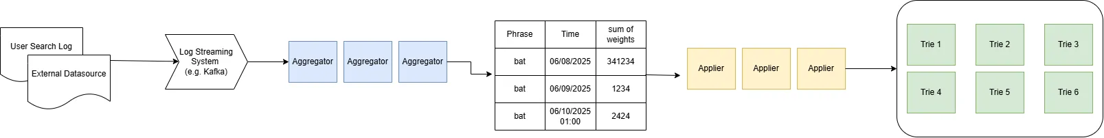 - (Phrase, Weight) 쌍들은 Log Streaming System (e.g. Kafka) 에서 실시간으로 스트리밍됨